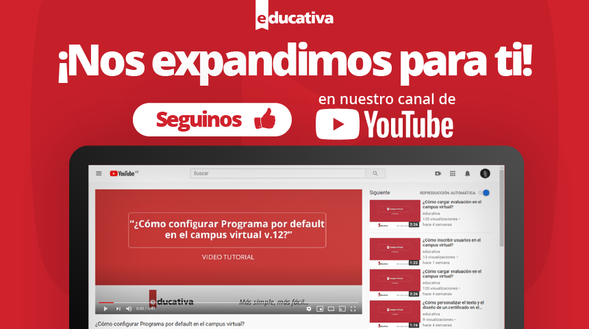 Suscríbete a nuestro canal de Youtube para ver los nuevos videotutoriales gratuitos que hemos preparado para que aproveches tu Campus Virtual educativa al máximo. Tu Campus virtual personalizado Dentro de nuestro Canal educativaSA se encuentran las diferentes Listas de Reproducción con videotutoriales agrupados según las funciones que precises realizar en tu Campus Virtual para personalizarlo […]