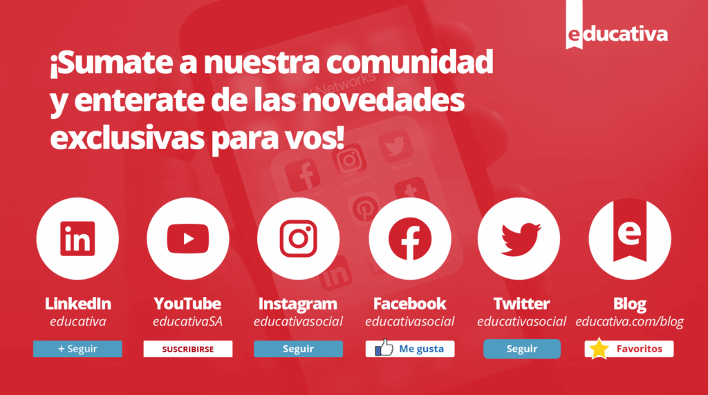 En nuestras redes sociales encontrarás información de valor sobre las tendencias del elearning y cómo plasmarlas en nuestros productos y servicios. Nos aseguramos de estar en las más utilizadas y por ello te contamos qué contenido encontrarás en cada una. Las redes sociales de educativa ¿Cuál es tu red social favorita? ¡Súmate a nuestra comunidad […]