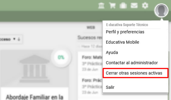 - Al estar logueado desde la APP, es posible controlar el cierre de sesión desde PC/Notebook haciendo clic en la foto de perfil, luego clic en “Cerrar todas las sesiones activas”.