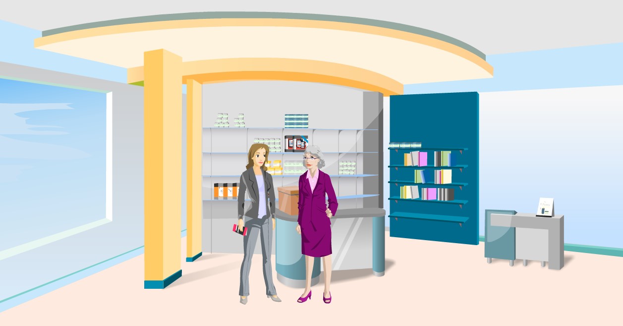 Un cliente pide ayuda a la vendedora, explica sus necesidades y le pregunta qué le recomendaría. La situación se lleva a cabo mediante sucesivas interacciones, donde la vendedora puede hacer preguntas para conocer más datos y finalmente las opciones de recomendación. El/la cliente también puede preguntar sobre las características del producto, modo de aplicación, etc.