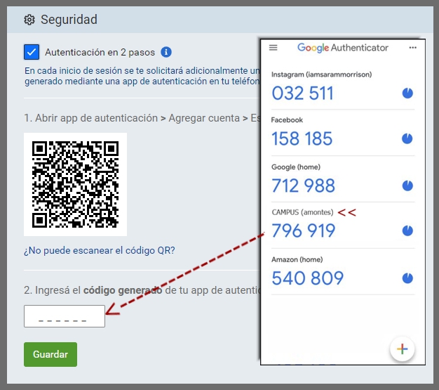 • Abrir la app Autenticación y escanear el código QR que muestra tu perfil.