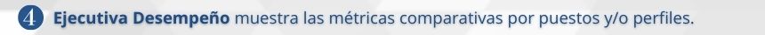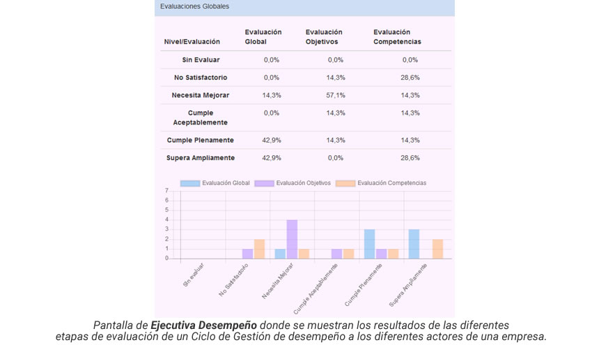Ante este escenario, Ejecutiva Desempeño es la solución web que permite trabajar en tiempo real a todos los actores, tener trazabilidad, monitorear todo el proceso y disponer de todas las métricas y analíticas en forma permanente e históricas, y comparativas por puestos y/o perfiles.