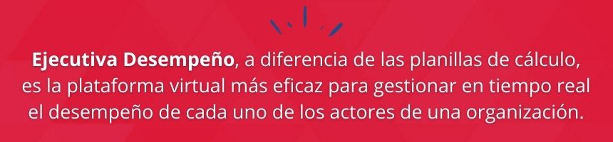 Ejecutiva Desempeño, a diferencia de las planillas de cálculo, es la plataforma virtual más eficaz para gestionar en tiempo real, de manera rápida y sencilla, los desempeños de todos los actores de una organización.